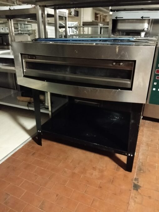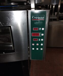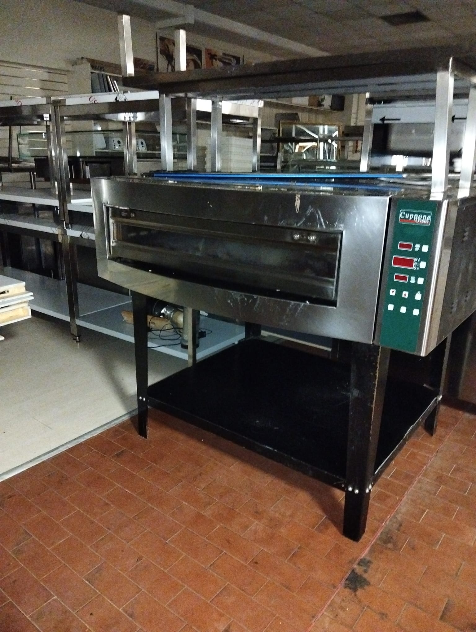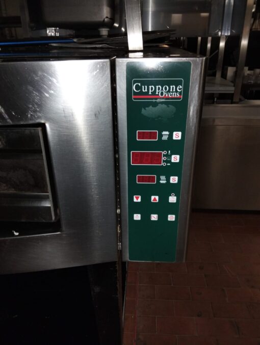 Forno pizza elettrico, capacità 9 pizze diametro 35cm, alimentazione trifase 400V, potenza totale 11.7 KW, comandi digitali. Marca CUPPONE. Usato revisionato.